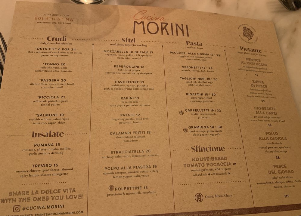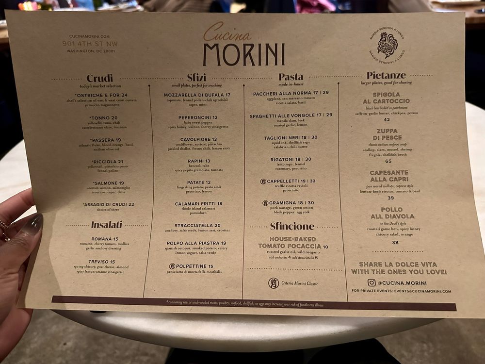 Cucina Morini offers a trendy and classy dining experience in Washington, DC, specializing in Italian cuisine with a focus on seafood. The menu features half-sized pasta plates, allowing guests to sample various dishes. Customers rave about the fresh pasta dishes like squid ink pasta and pork ragu. The ambiance is described as vibrant near the front door but more subdued towards the back. Prices are considered slightly high for the portion sizes, but the quality of the food and attentive service make it worth it. Highlights include the salmon crudo, calamari, and meatball appetizers. The happy hour specials, including a martini hour, are a big hit among patrons. Overall, Cucina Morini impresses with its high-quality dishes and inviting atmosphere, making it a must-visit for Italian food enthusiasts in the area.